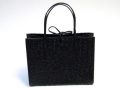 オーストリッチのブラック素材を使ってのシンプルなデザインのミニトート。開口部は、紐をリボン状に