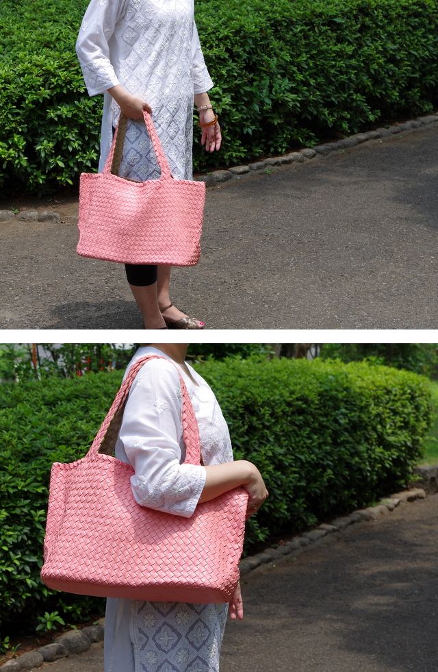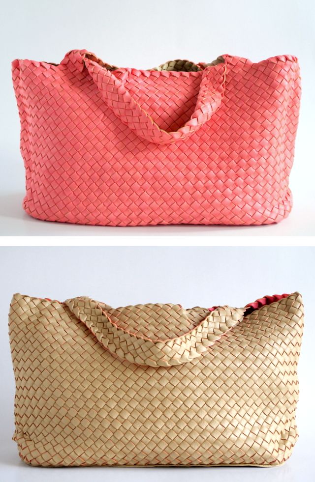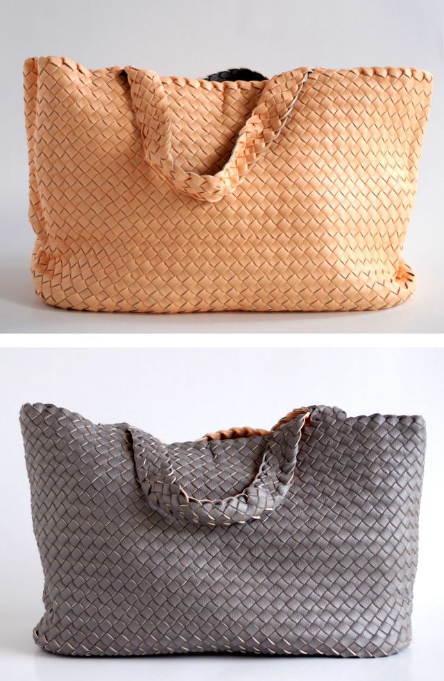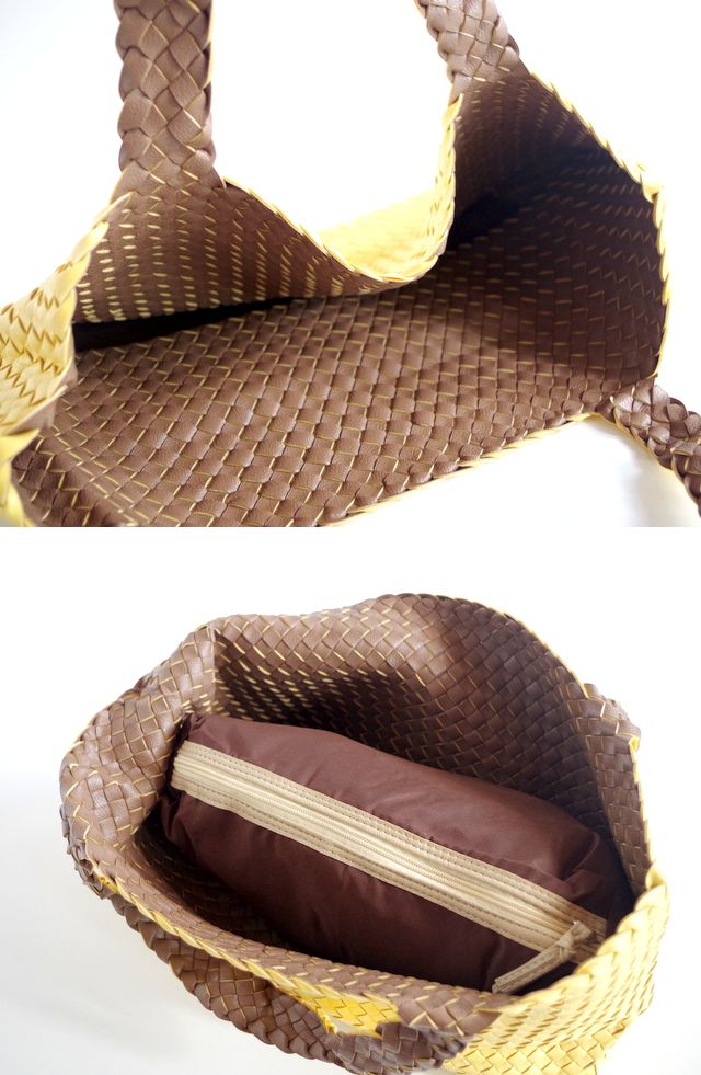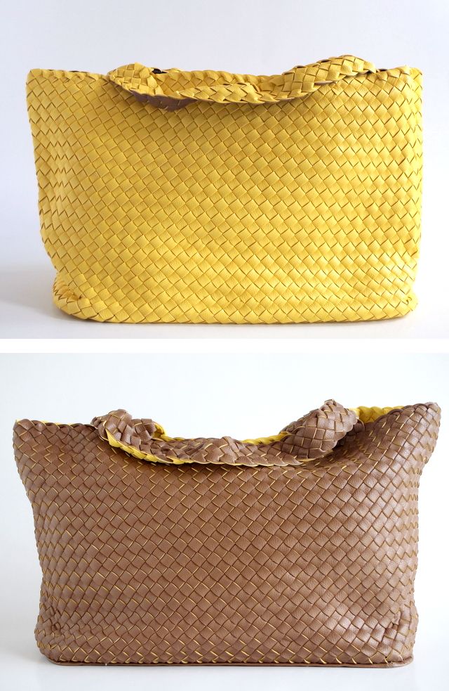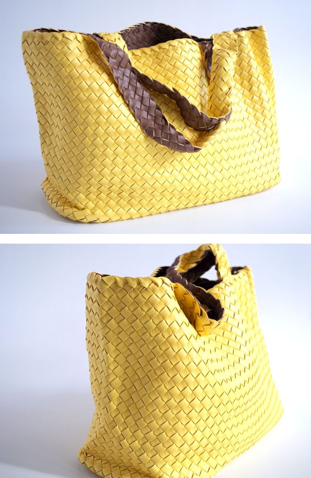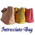 ボッテガベネタで有名なイントレチャートのトートバッグ。両面異なる色のPUが張り合わされたバッグです。