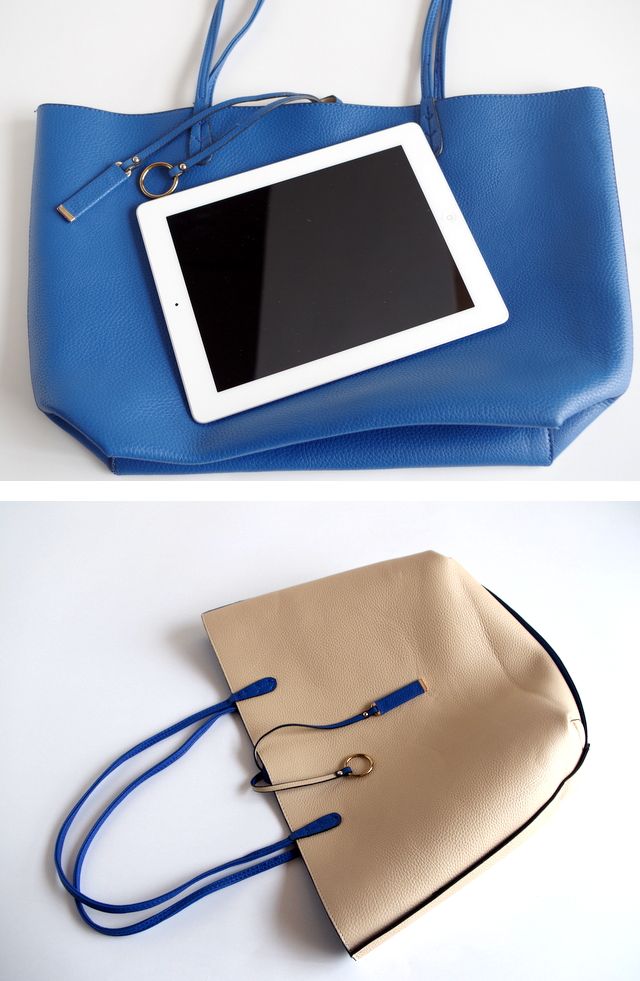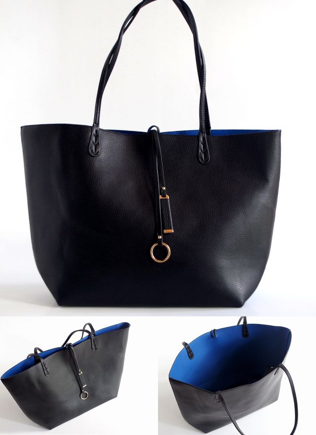 雑誌やA4ファイルもスッポリ入ってしまう大容量のリバーシブルのトートバッグです。
