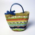 色とりどりの小花柄を使ったテープとストロー素材のブレードを使った大人も持ちたいGREVIのミニトートバッグ。