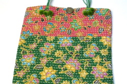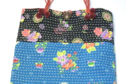 南仏ソレイアード風の柄やビビットな色合いの花柄、渋めな色調のフラワー柄の布にハンドステッチが左右に入っています。