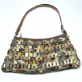 様々な型押しのゴールドレザーをパッチワークのようにつなぎあわせた、とってもかわいいハンドメイドバッグ。