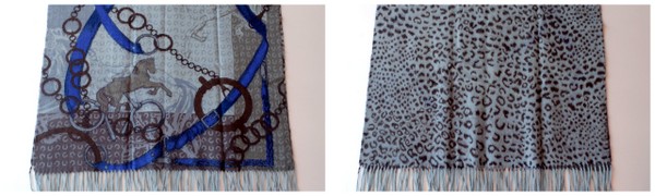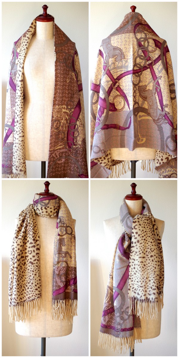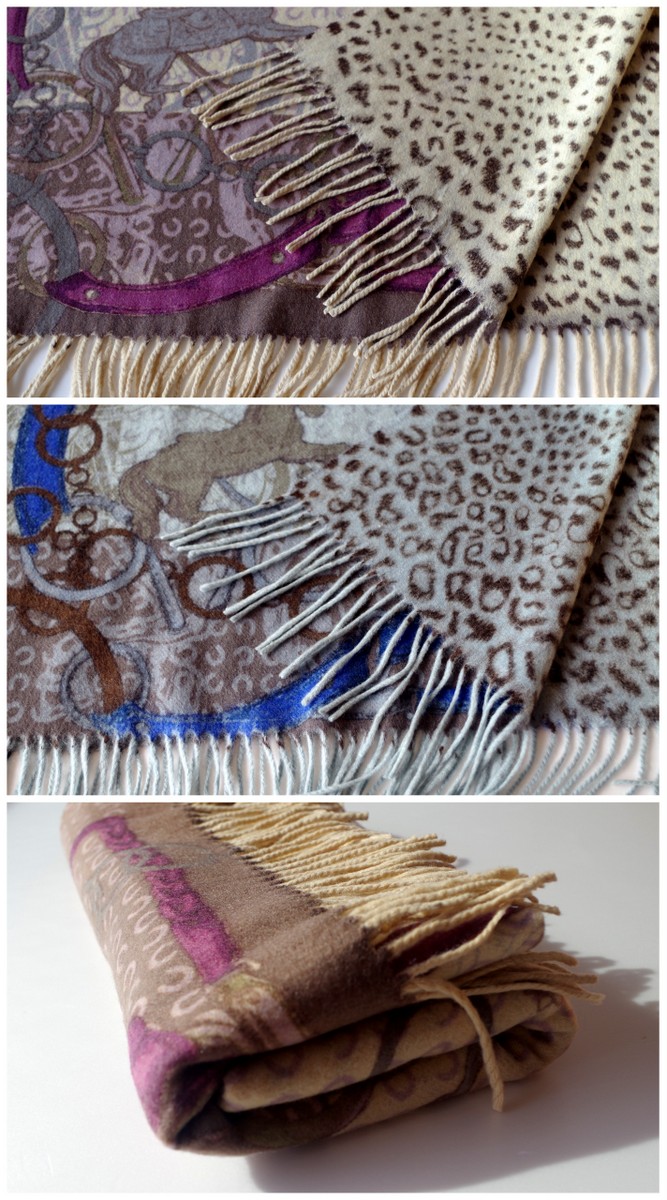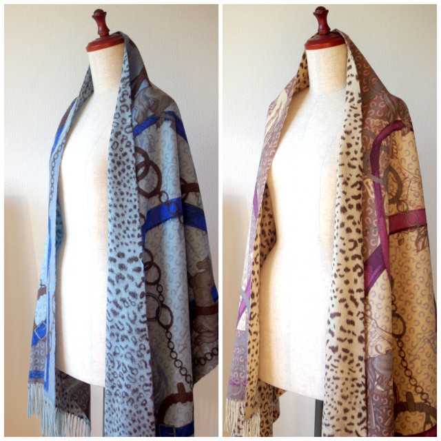 2柄のウール100%のリバーシブル(ダブルフェイス)ヒョウ柄 ストール。お好みの色をお選び下さい!