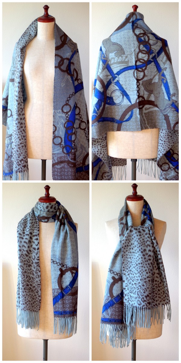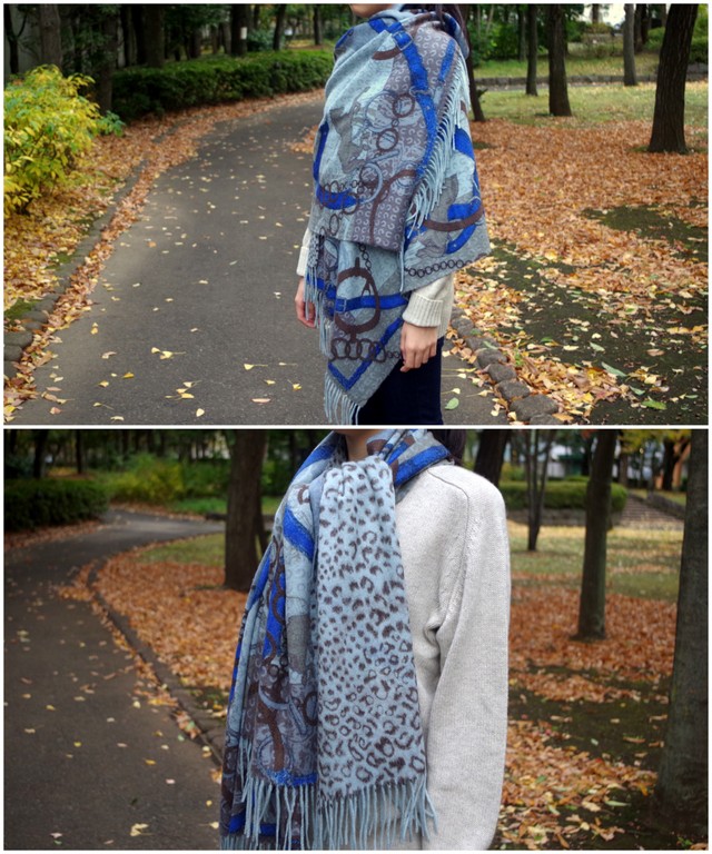 コンビネーションの2色になります。無地ばかりなってしまいがちな冬のおしゃれに欠かせない柄物大判ストールです。