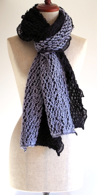 コントラストのある2色使いのため、このマフラー・ストールの巻き方で見え方が変わってきます。