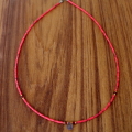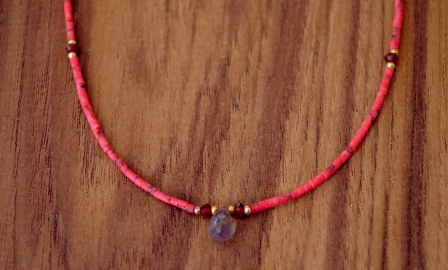 ネックレス部分は、コーラルのビーズ。和名を『サンゴ』と呼び、3月の誕生石でもあります。