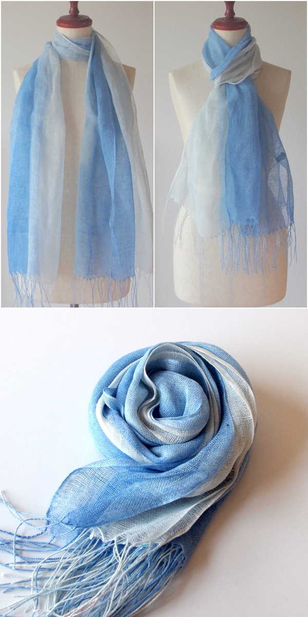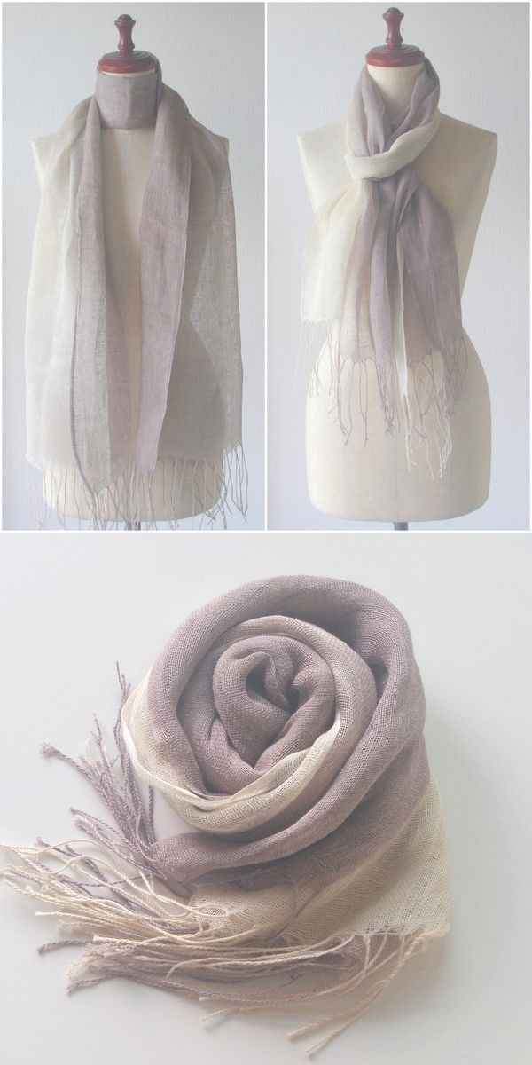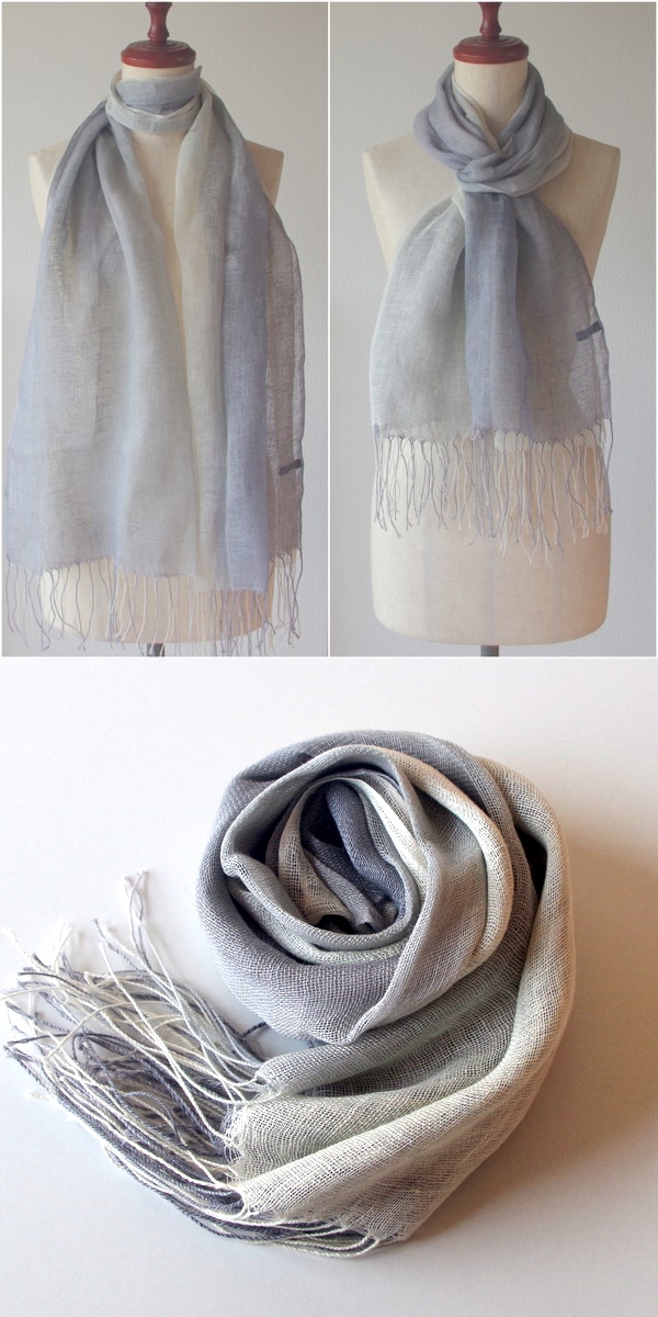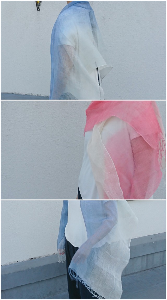 リネン100%のグラデーションの大判ストール。大きさは60×200センチのロングで大判です。