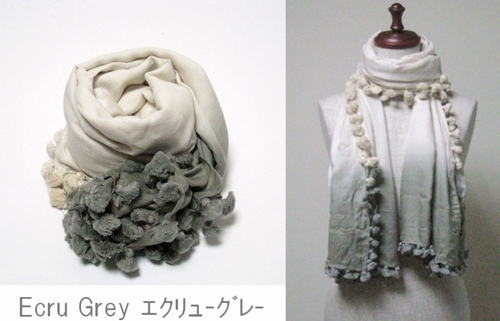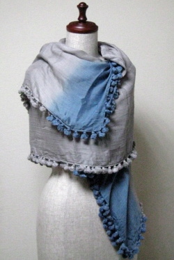 シトラスの大人気のポンポンストールの中でも、よりおしゃれな無地のグラデーションストール。