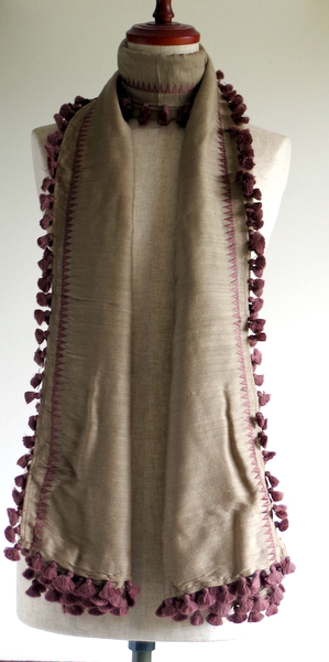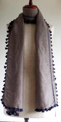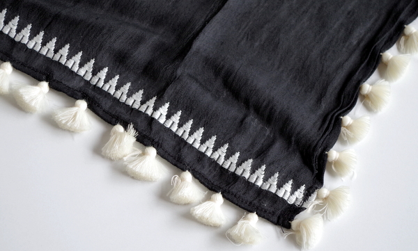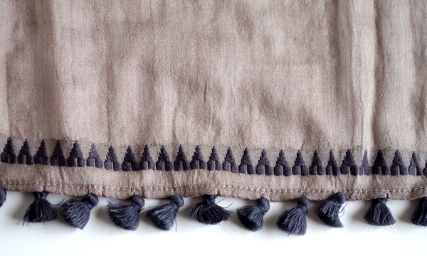 ストールの色にアクセントになるように、ジャガード刺繍が施され、そのふちに同色ではなく、コントラストだったり、