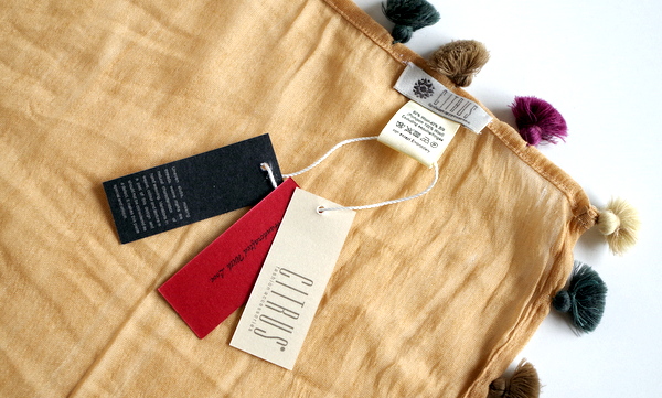 同色や同系色のポンポンがついたものより、よりエスニック感やフォークロア感を楽しめるシトラスストールです。