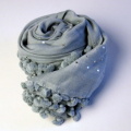定番の春夏コットン・シルクストールのペールブルー色に小さなミラービーズがつけられた上品なストール。