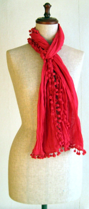 大きめのポンポンがついた綿100%のポンポンストール。