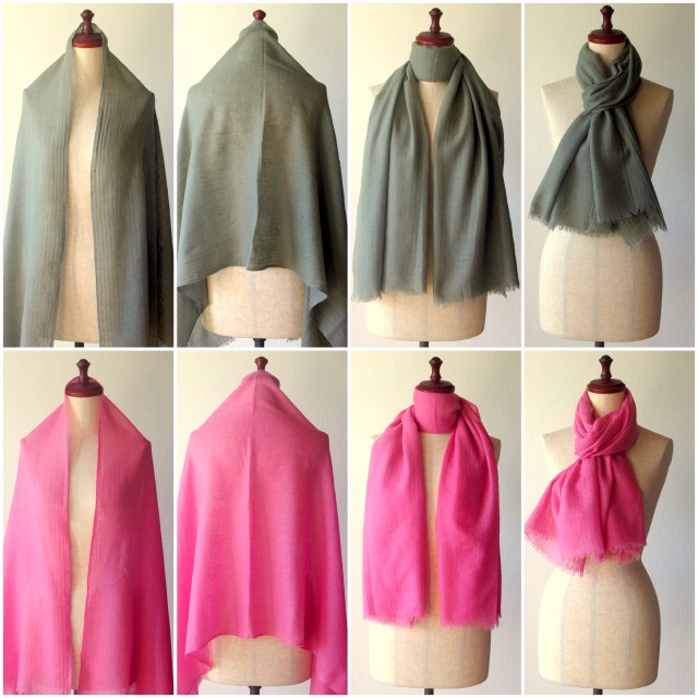 65cm×180cmと大判でありながら、くるりと巻きつけるとマフラーのようにもなります。