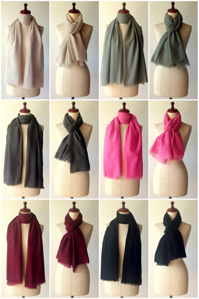 ウール100%のハンドメイドの大判ストール、6色。