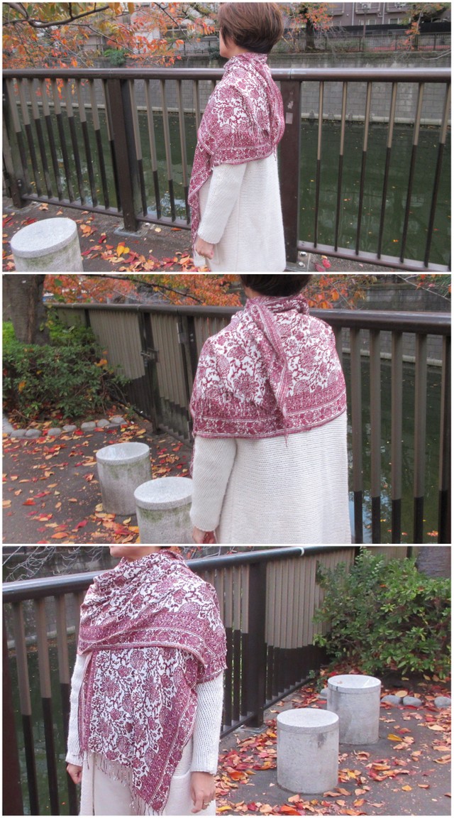 サイズは、幅が約50センチ、長さが約180センチのちょっとした大判スカーフで、巻き方で色々楽しめるサイズです。