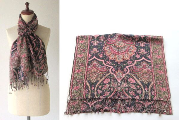 25年の秋冬の新柄ストール、ビスコース100%の花・植物柄ストール、インド製の大判ストール。