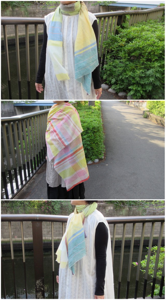 大判のコットンのストールは、夏だからこそ、UVカットや紫外線防止にもなります。