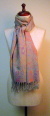 春・秋冬と3シーズン大活躍の大判のストールです。ペイズリーと花と大きな葉が様々な色で織り込まれた高品質ストール。