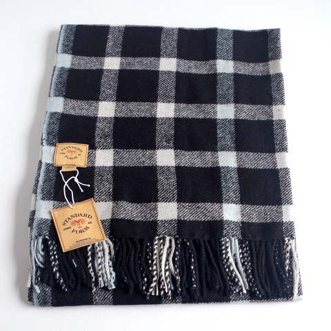 従来の薄手のカシミヤ・ウールの大判のストールラインと厚手のチェックを中心としたSTANDARD FORMのラインに。