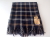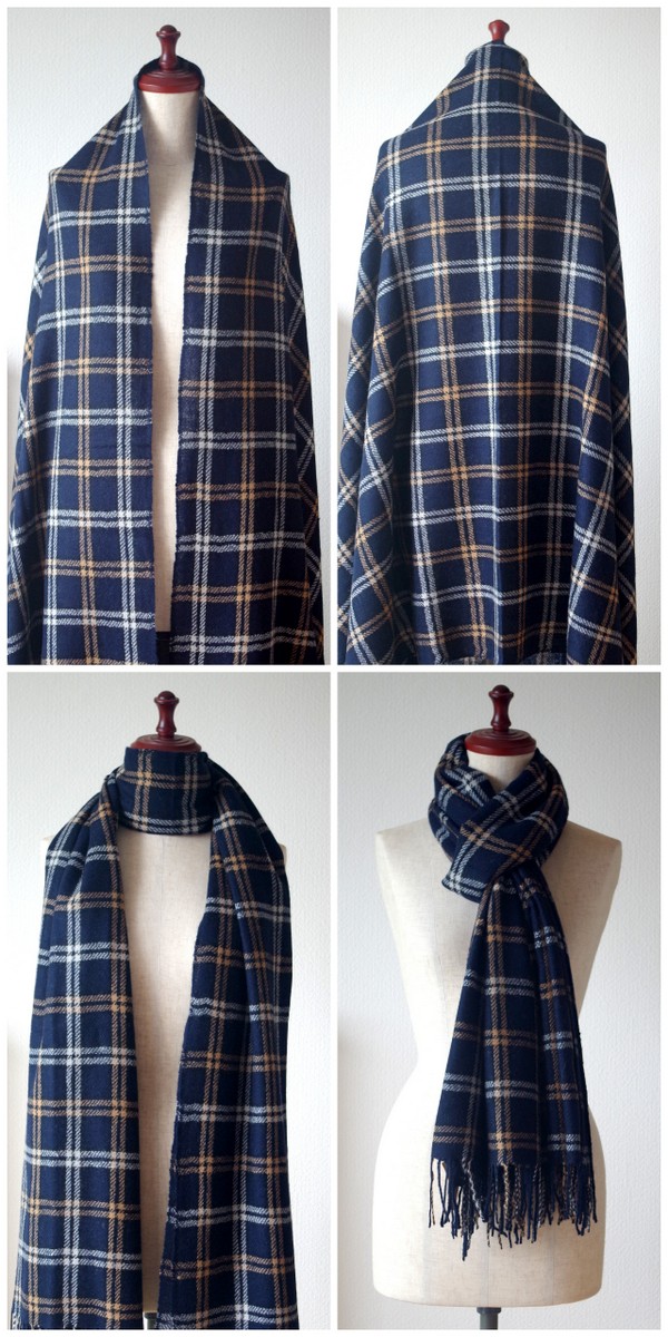 ネイビーの下地に、キャメルとホワイトのラインがはいったチェック柄のストール。