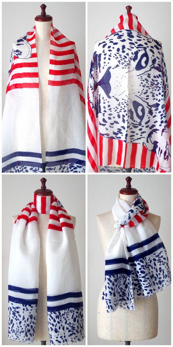 巻いているときには、アニマル柄を感じさせない、さわやかなストライプの模様なのがYARNZらしいです。