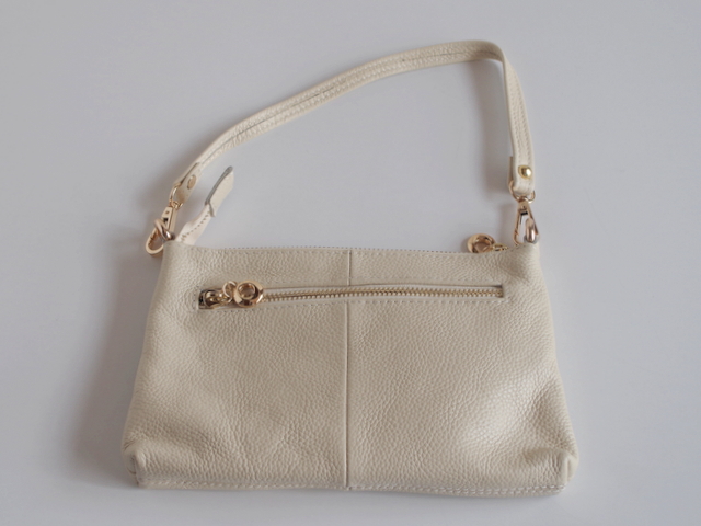 中には、仕切りがわりのファスナー付きのポケット(お財布代わりにもなります)、側面にもうひとつファスナー付きポケット。