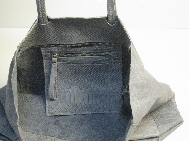 パイソン柄(ヘビ柄)の型押しの牛革は、非常にやわらかい上質の素材でとにかく重さを感じさせないほどの軽さ。