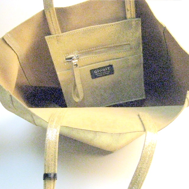 上質な牛革をにラメ加工したこのトートバッグは、キラキラと輝きおしゃれな感いっぱい。
