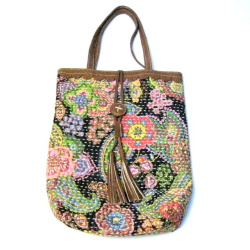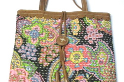 色鮮やかなペイズリー柄や、渋めな色調のフラワー柄の布にハンドステッチが左右に入っています。
