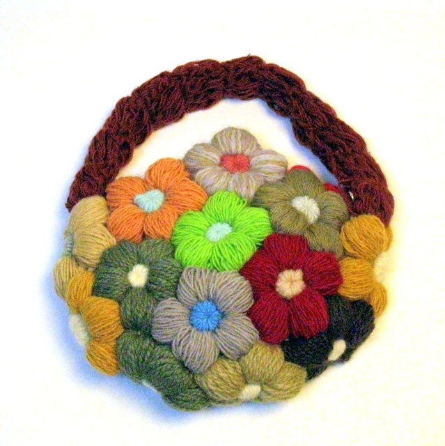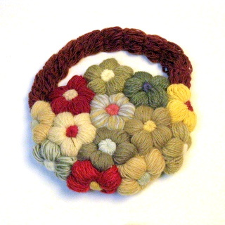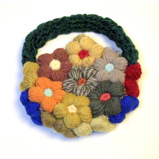 【毛糸バッグ】手編みの手作りバッグ ニットのお花の毛糸バッグ(ニット)