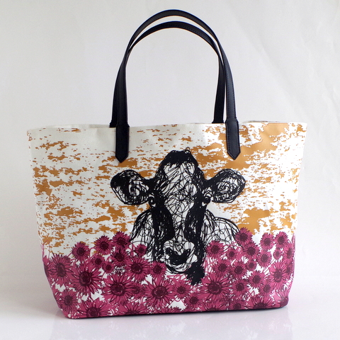 こちらのキャンバスバッグは、Cow Doodle【牛 いたずら書き】と名付けられたトートバッグ。
