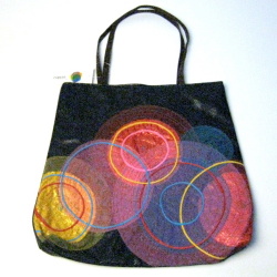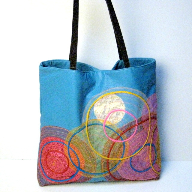 ラメパッチワークや刺繍がされた、かわいくておしゃれなハンドメイド/トートバッグです。