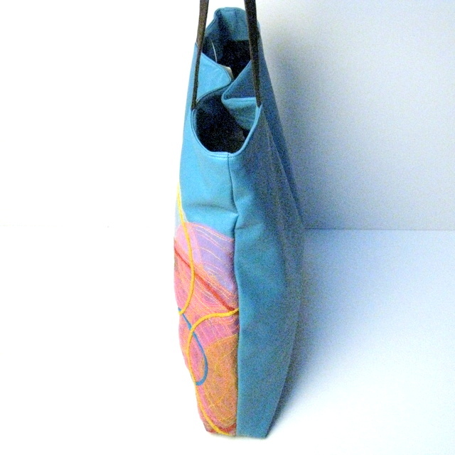 持ち手も長くつくられ、旅行やお出かけにも手軽にお持ちいただけるハンドメイドバッグです。