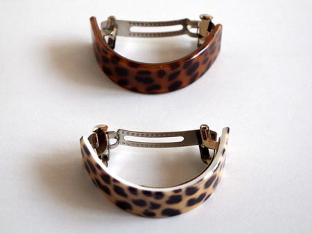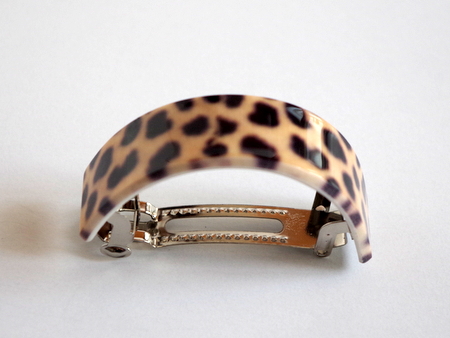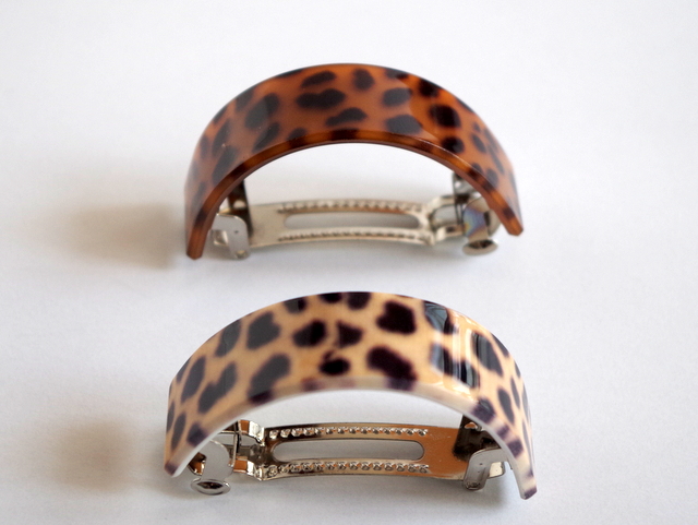 【ヘアアクセサリー】バレッタ アニマル柄/ヒョウ柄/半円/シンプル・結婚式・2次会/オフィス/ブラウン・ベージュ★メール便対応