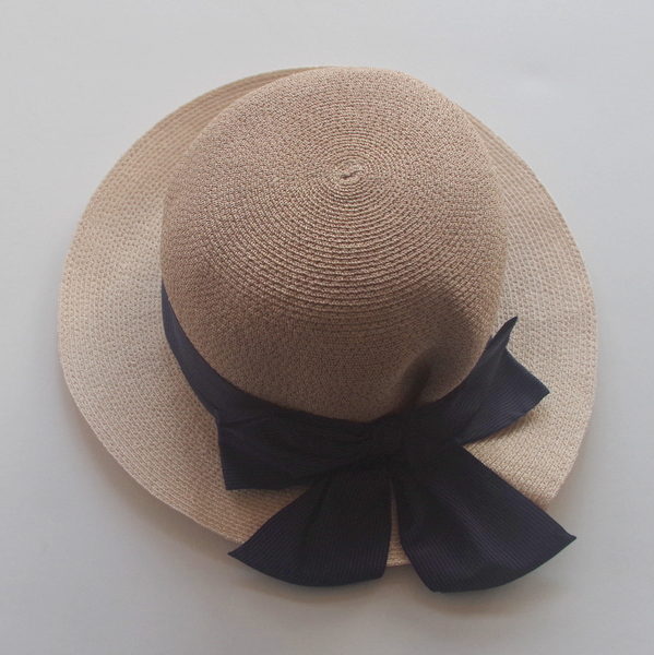 grevi帽子のニューモデルです。厳密にはストローハットではなく、アバカ(マニラ麻) のブレードでつくられた、大きなリボンつきハット。GREVIらしいつば広ではないミドルサイズの帽子です。