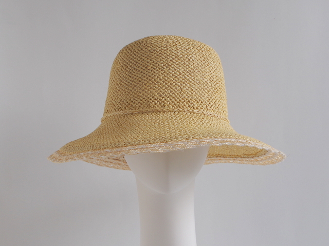 GREVIらしいストローハット。上質な麦を使っているように見えますが、高品質の軽い麻と