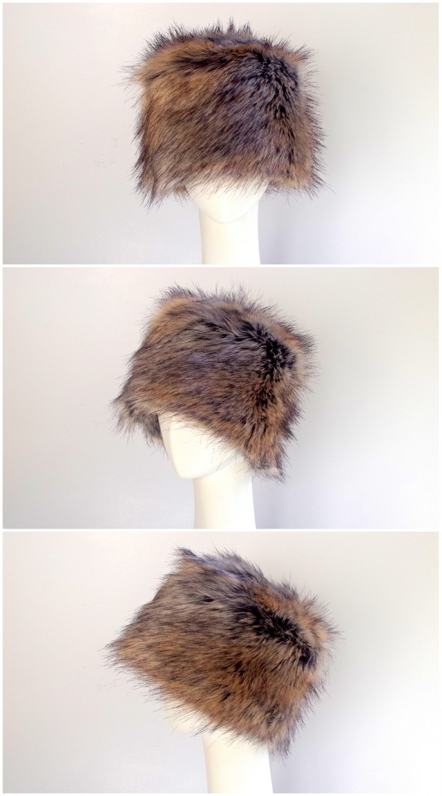 本物のファーのようなベージュ・ブラウンミックスです。毛足が長く毛皮のようなコサック帽、ロシア帽です。