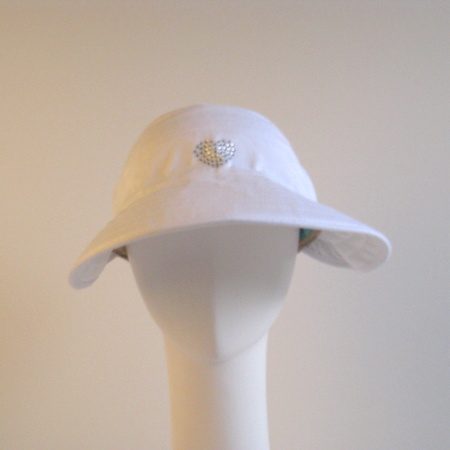 Physiciane endorsedのサンバイザー。コットン100%の浅めで真ん中にハート型モチーフがついています。