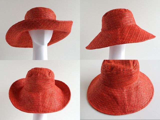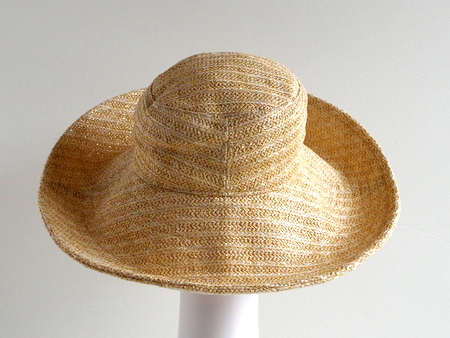 もちろん、つば広の帽子ですが、使用しない時には折りたためて、場所をとらず収納にも便利です。