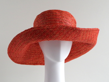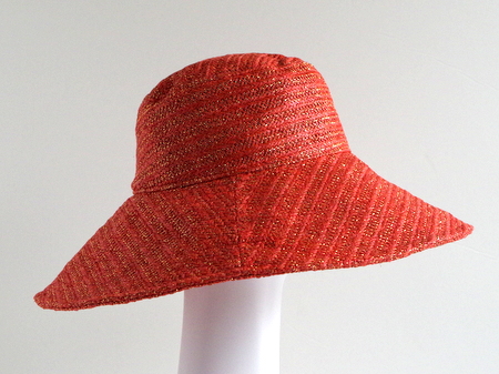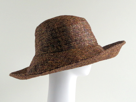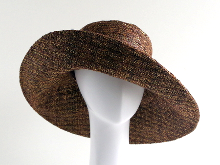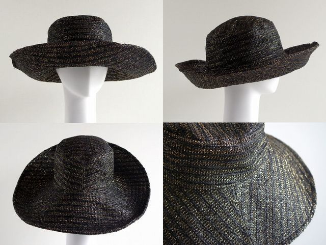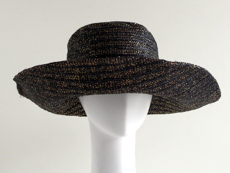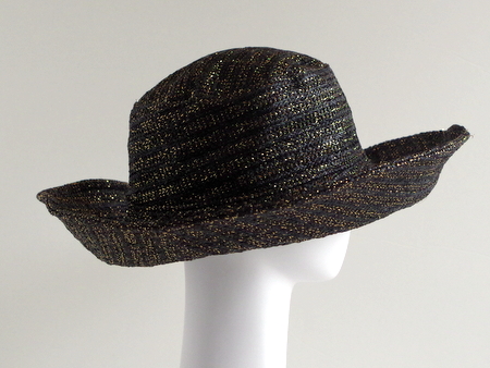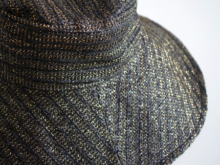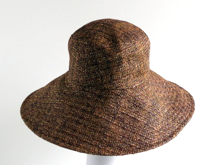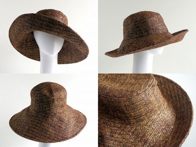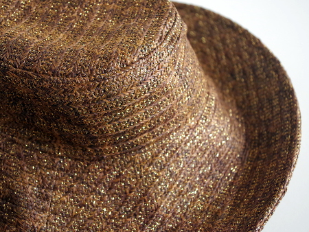 っかといってギラギラしない上品な光り方なのでどんな服にも合わせやすいつば広・デザインハットです。