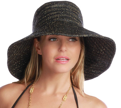 全体にラメが織り込まれた最大14センチのつば広の帽子。