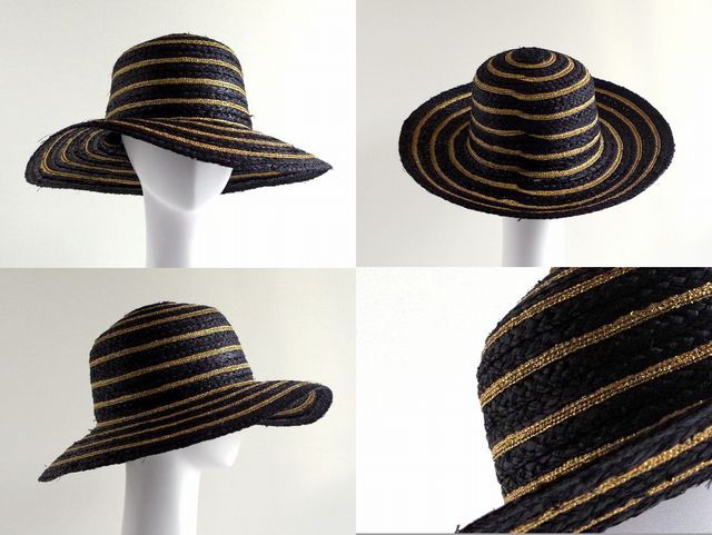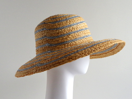 ラメ糸が巻き込まれた日よけの麦わら帽子。1番シンプルなデザインですが等間隔にラメが入りおしゃれな飽きのこないハットです。ナチュラルにはシルバーのラメが、ブラックにはゴールドのラメが使われています。
