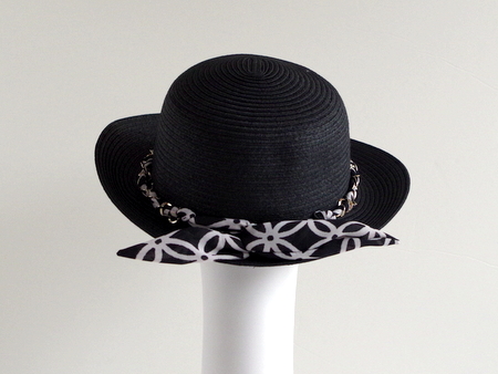 カジュアルにもエレガントにも楽しめてしまいます。色はブラックとホワイトで、手持ちの帽子にも活用できます。