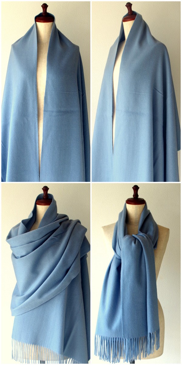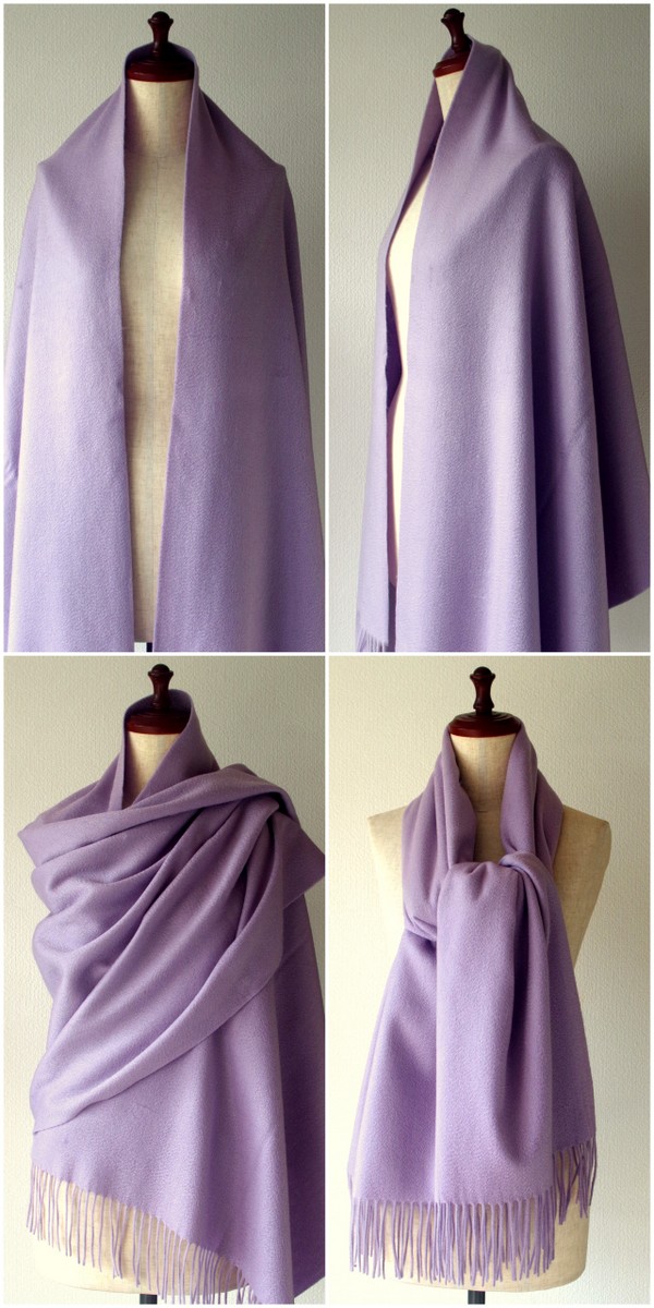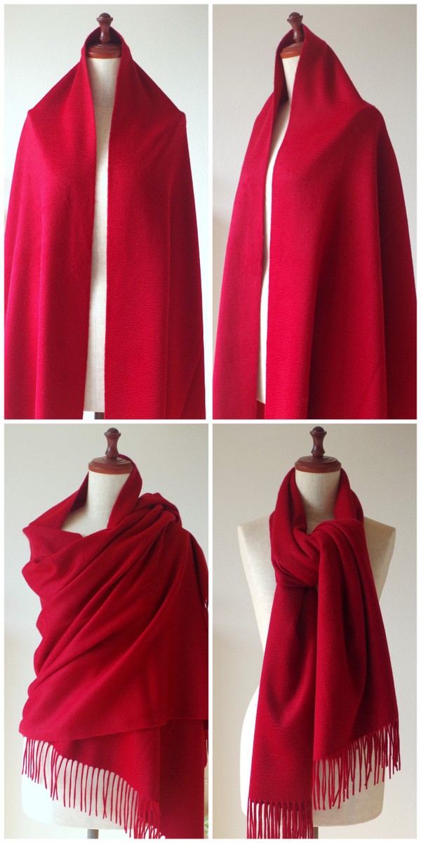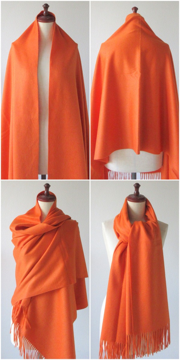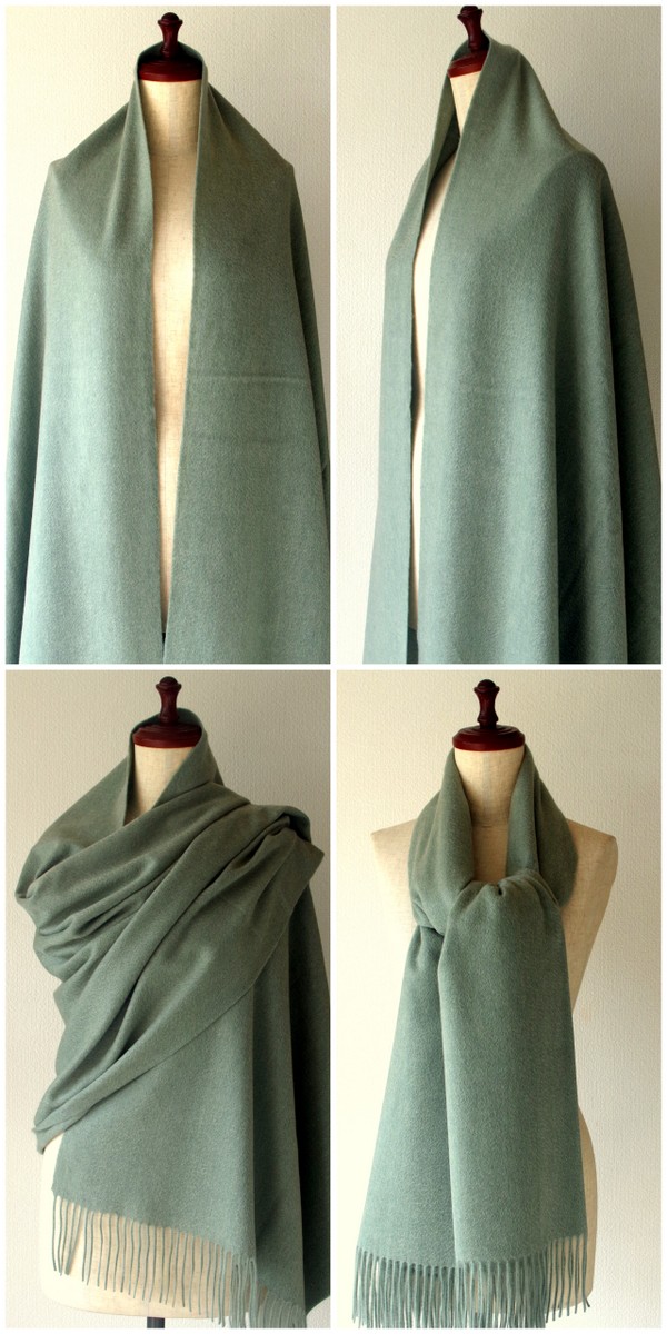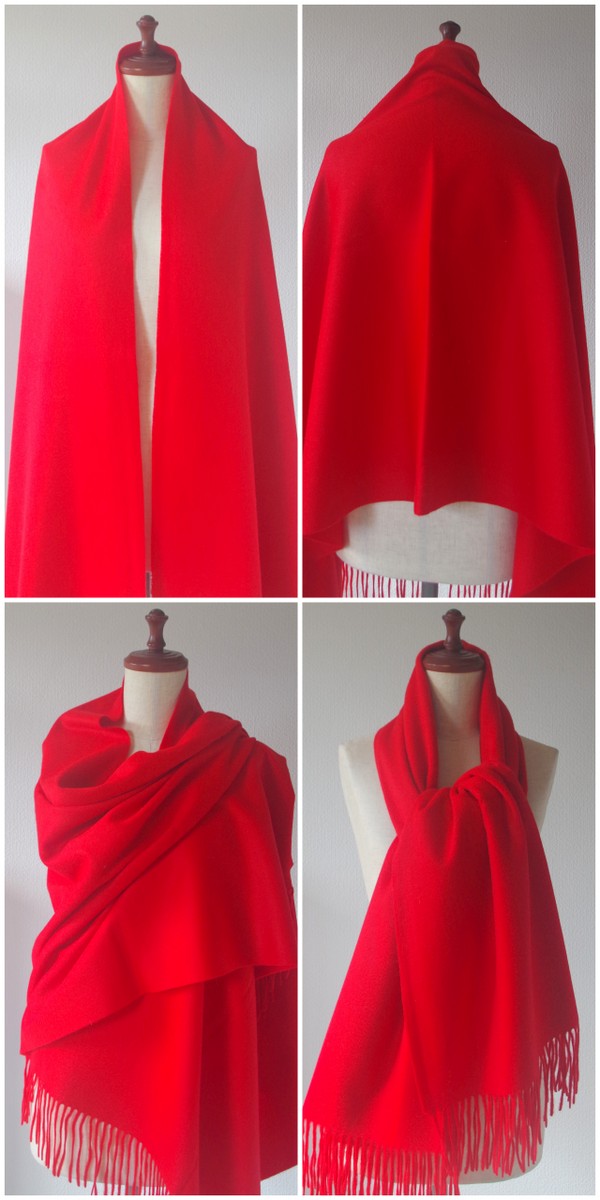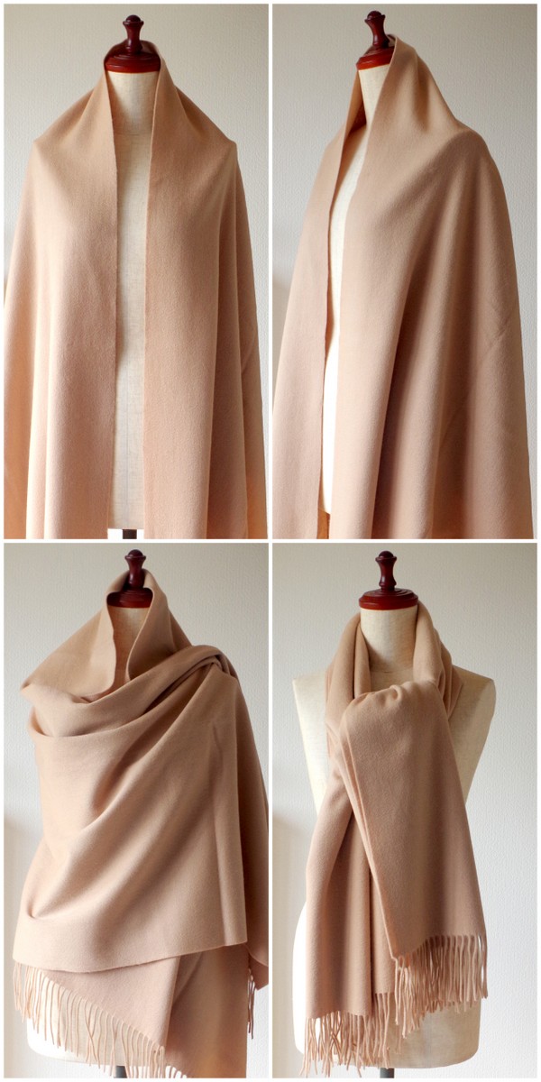 しっかりとした重さがあってこれ1枚を巻くだけで十分なあたたかさです。厚手でしっとりとしていて、とっても柔らかな肌触りで、カシミアストールです!