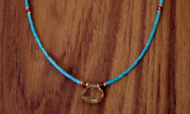 ちょっと大き目のシトリン。しずく型(ドロップ型)のプチ天然石がついたネックレス。