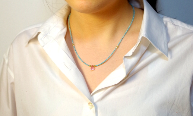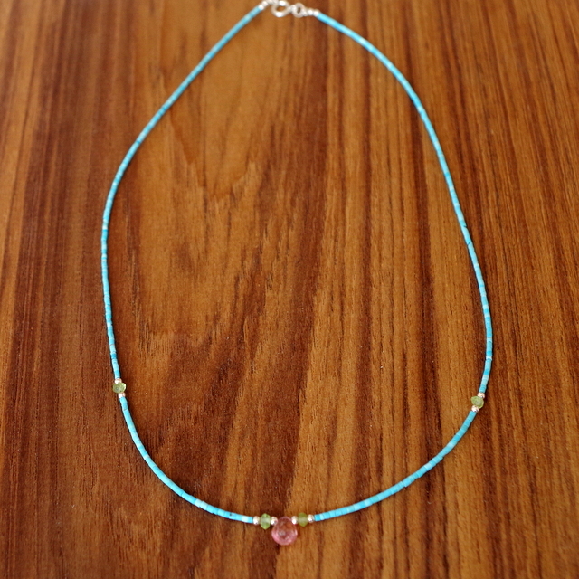 ネックレス部分は、小さなターコイズ。1ミリ程の繊細なターコイズビーズです。