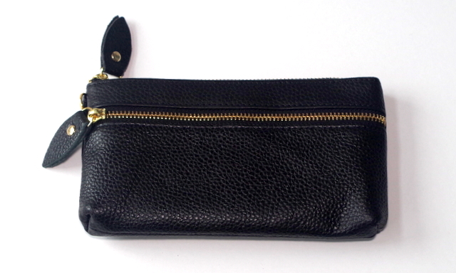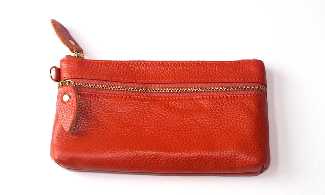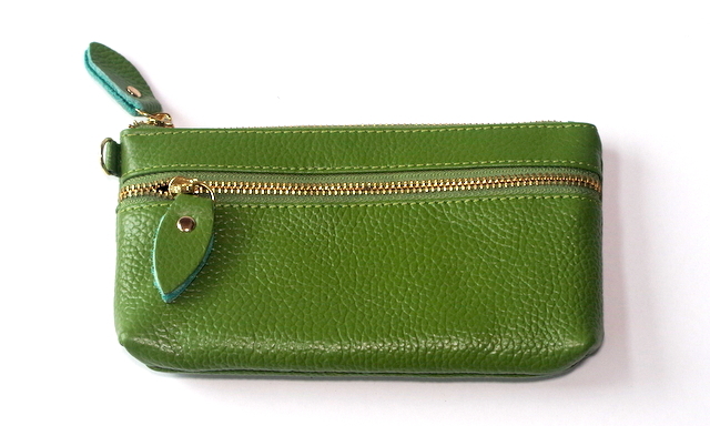 シボ感のある本革にそっくりなPUレザーでつくられていて、汚れがつきにくく、丈夫で軽く発色がいいポーチです。