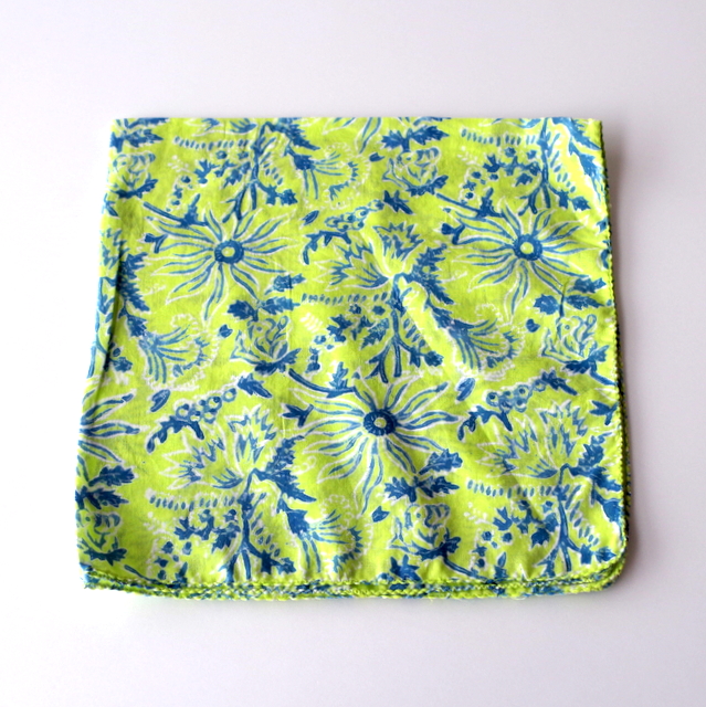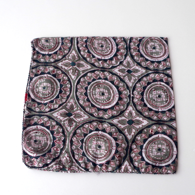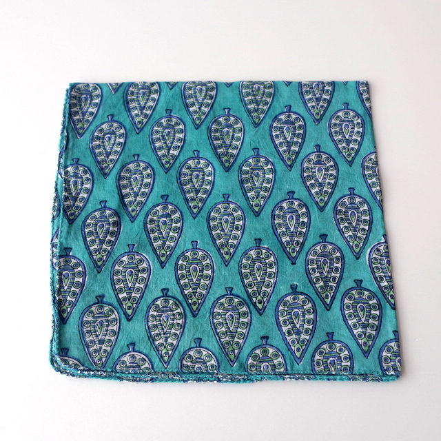 職人によるハンドメイドの木の型を使ったハンドメイドのブロックプリントをつくられた綿ハンカチ。