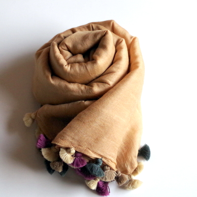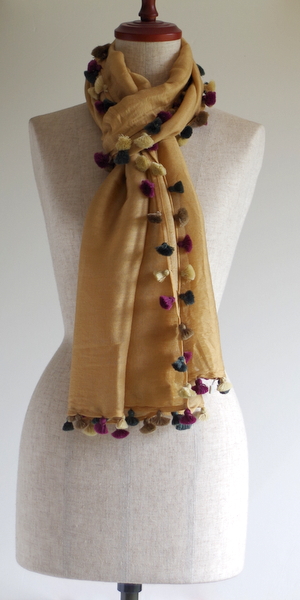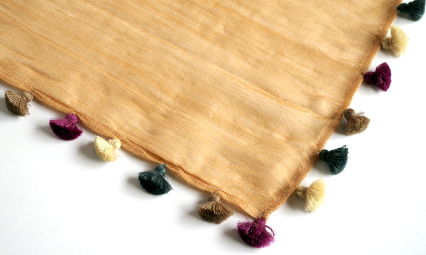 同色や同系色のポンポンがついたものより、よりエスニック感やフォークロア感を楽しめるシトラスストールです。