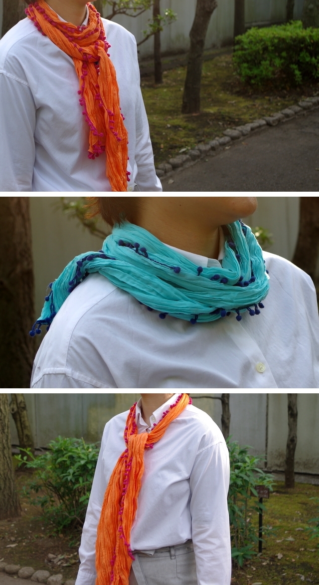 春夏のおしゃれには欠かせない色鮮やかなコットンのポンポンストール。